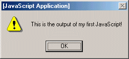 This JavaScript will display text, but it will appear in a small pop-up window with an OK button. Replace the instruction in the first example with the line of text. Once again, if your browser width has inserted line breaks, remove them so that the entire instruction is on one line.